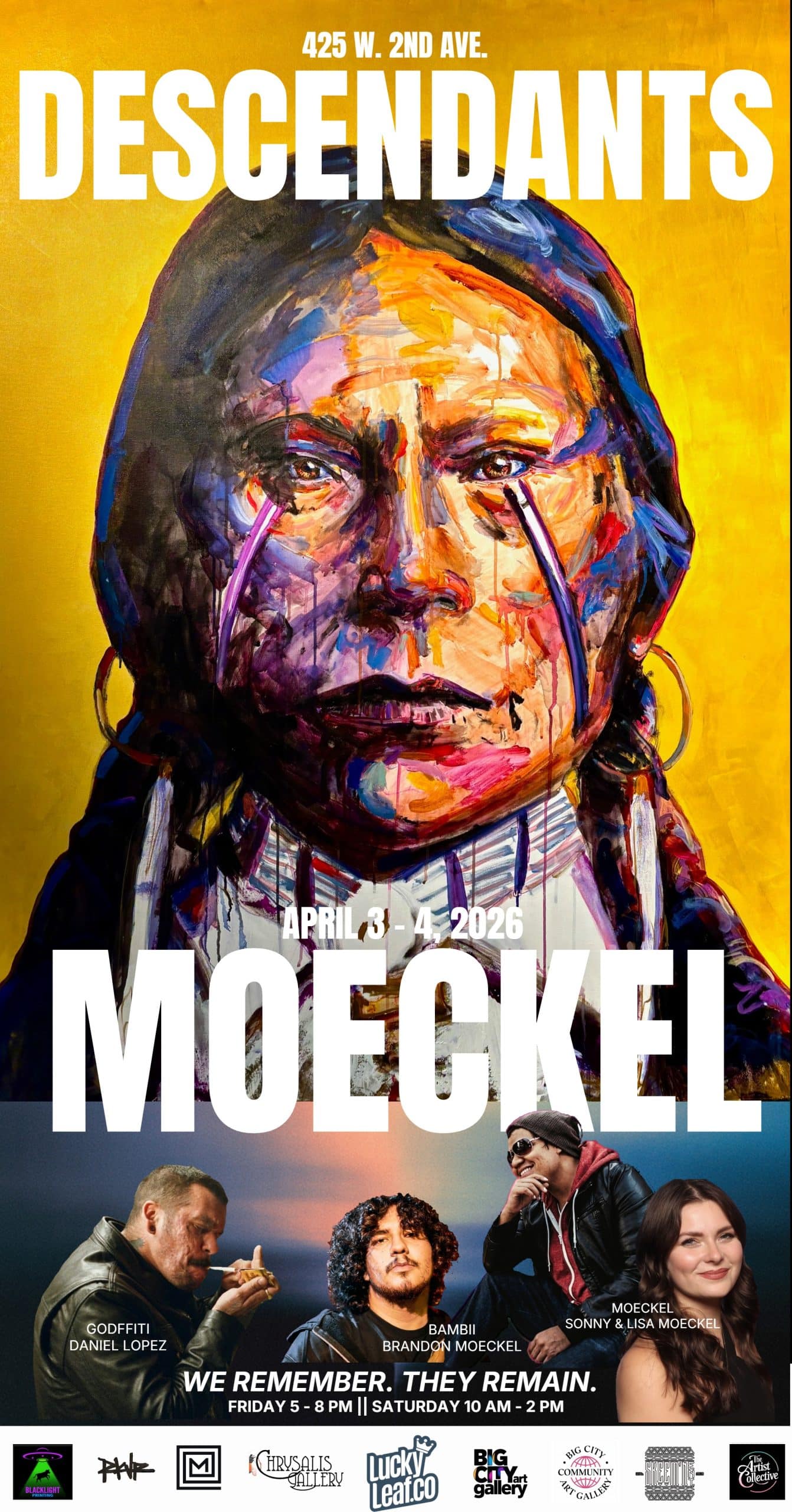 Introducing Moeckel Studio's “Descendants”, their most prominent solo exhibition yet. Sponsored by Chrysalis Gallery and featuring special guest artist Godfitti and live music showcase (Friday 7pm) featuring Native American musician, […]