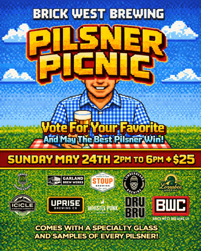 Join us for the 4th Annual Pilsner Picnic at Brick West Brewing on Sunday, May 24 from 2–6PM on the patio.